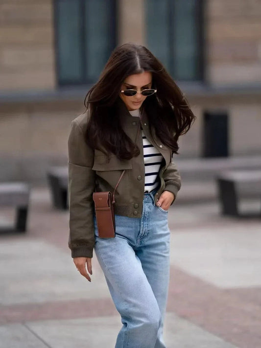 Kurz geschnittene Lederjacke mit Reißverschluss für Damen | Renata